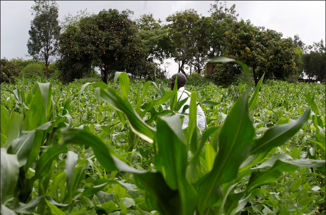 A small-scale farmer works at his maize farm where he plants indigenous seeds at Kyeleni village of Machakos, Kenya December 13, 2022. REUTERS/Monicah Mwangi Purchase Licensing Rights