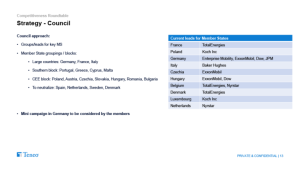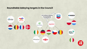 To implement the divide-and-conquer strategy, the Roundtable assigned specific companies to “establish rapporteurships” with different EU governments. TotalEnergies would target the French, Belgian, and Danish governments, and ExxonMobil would target Germany, Hungary, the Czech Republic, and Romania.